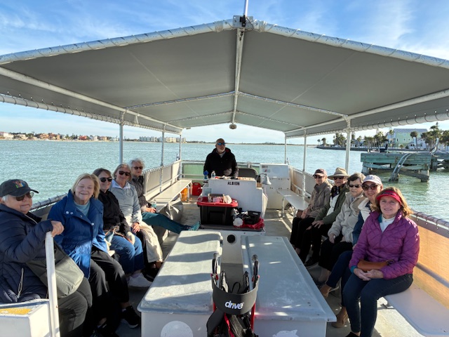 On our final day, one group went to the St. Petersburg Yacht Club for lunch while another group walked and explored Fort Desoto Park, a 97 acre beach preserve. We all met later at Passé a Grill for our sunset cruise.  Those arriving earlier had lunch at the Paradise Grill – what an exceptional spot!  It was an order-at-the-window place then eat on picnic tables right smack on the Gulf!  So good. Another beautiful day..