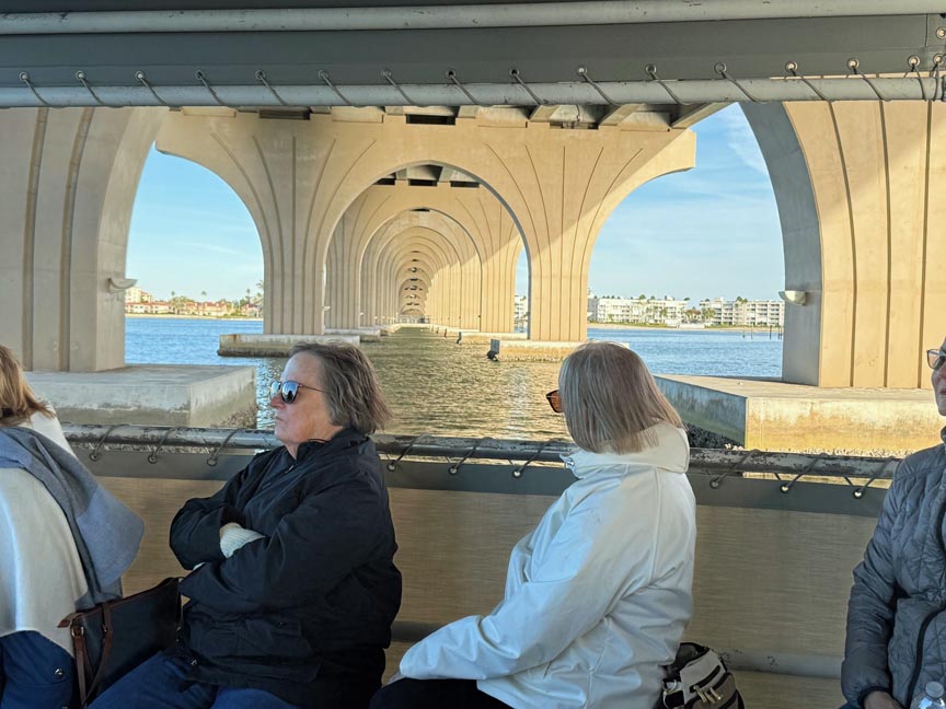 With no heat and weather-challenged clothing, it was a feat to move forward with activities; but we did in true Thong spirit. What did we do? Day one was in St Pete beginning at the Dalí Museum. None of us expected to be so stunned by what we saw. Thanks to the recorded tour and the docent, we were able to see the multiple facets of his pictures. The dome show gave us a further appreciation of his genius.