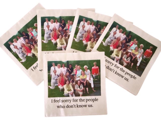 The highlight of our reunion, as Linda said, was our gift night. In honor of sixty years of friendship, people gave thoughtful, meaningful, and creative gifts.  Beverly gave “we survived 60 years of friendship “ t- shirts;  Betty gave purple/ gold socks unknowingly for cold weather; Barbara gave chocolate pecans from France and tile magnets from Portugal and wrote a wonderful poem which we should read at each gathering; Margie gave special chocolate cookies from Switzerland; Charlotte gave ornaments with a loving message; Louise gave a group picture on a napkin with the saying “I feel sorry for people that don’t know us”; Faye gave incredible tote bags with a picture of each of us from the KD composite; Tina ended the evening with a symbolic campfire of our planning meltdown and then rebirth to the wonderful reunion in St Pete.